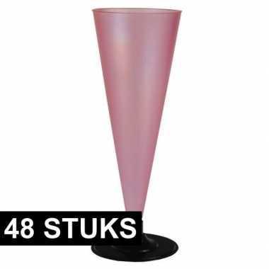 Party flutes roze doorzichtig 48 stuks | Plastic-glas.nl