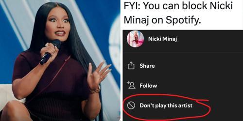 Nicki Minaj fans are blocking her on Spotify following her...
