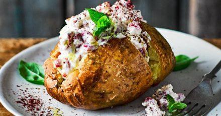 Jacket potato with whipped feta & sumac recipe | Good Food
