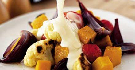 Roast winter veg with fondue sauce recipe | Good Food