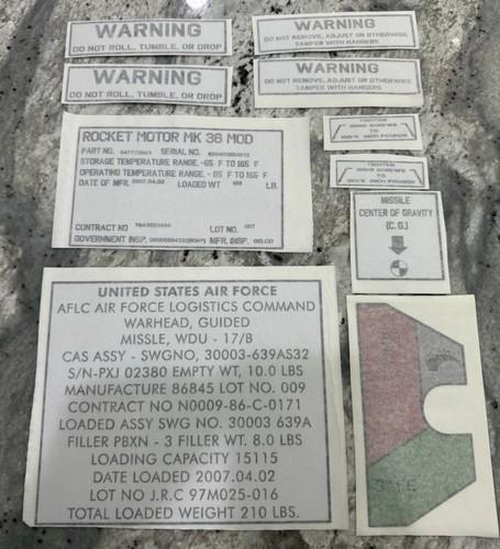 AIM-9 Sidewinder Missile White Air Force Sticker 9x Raytheon...