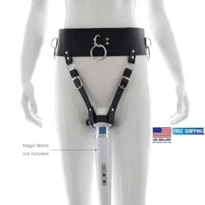 Forced Harness Holder PU Leather Wand Belt Orgasm Massager...