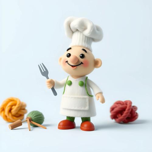 Cartoon Chef Doll Holding Fork with Yarn Background - Free...