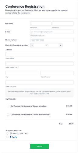 Conference Registration Form with Payment Form Template | Jotform