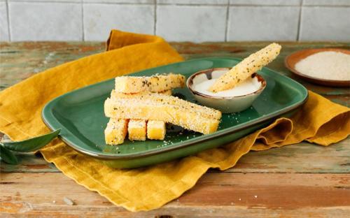 Bastoncini di polenta con salsa ai formaggi