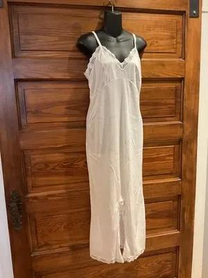 JC PENNEY IVORY satiny nylon MAXI formal long LACY LINGERIE...