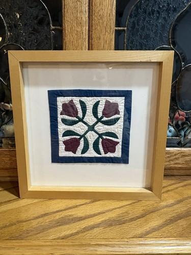 Vintage Framed Quilt Wall Hanging 11 x 11” Handmade Folk Art...