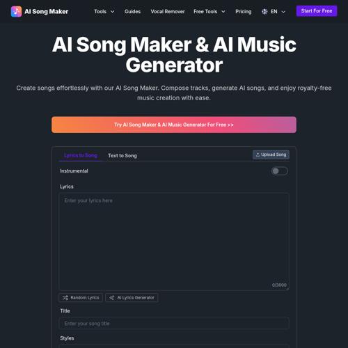 AI Song Maker: Royalty-Free AI Music Generator & Creator...