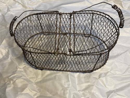 Vintage Antique French Wire Gathering Basket Egg Oval Shaped...