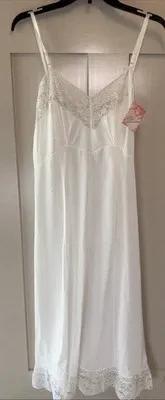 NWT VTG KOMAR LINGERIE FULL DRESS SLIP White LACE NYLON SZ 36...