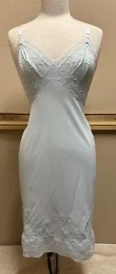 VTG Rogers Blue Nylon Slip Lace Cup Full Slip Wide Lace Hem SZ...