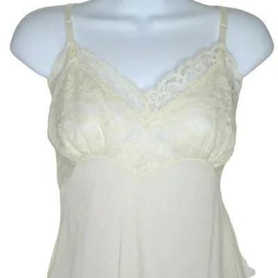 Vintage Merville Slip Nude Beige Full Lace Trim Size 40 Tall Sz...