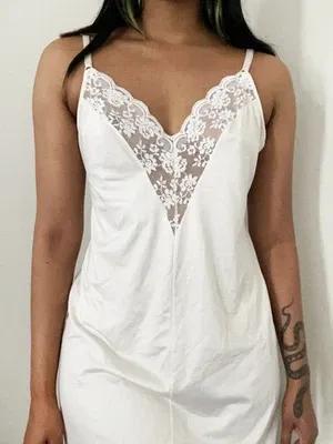 Womens Vintage Val Mode Size 36T Full Dress Slip White Lace...