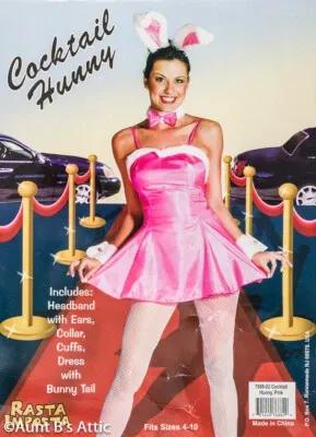 Cocktail Bunny Costume 5Pc Short Dress Faux Fur Collar Cuffs...