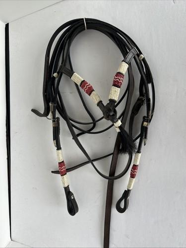 Western Leather Headstall Hand Braided Rawhide Knotting...