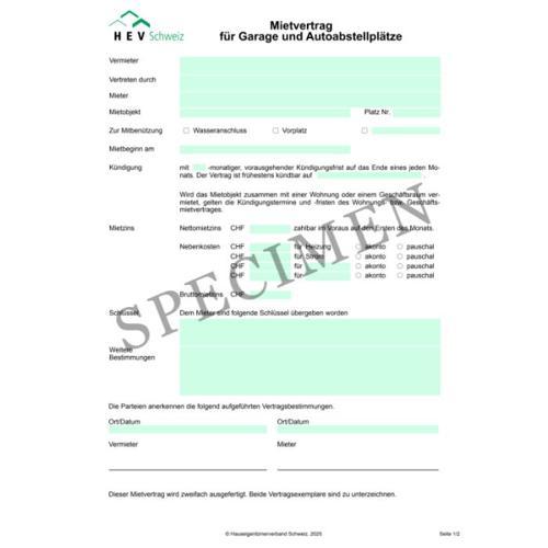 Mietvertrag für Garagen/Autoabstellplätze (Schweiz allg.)