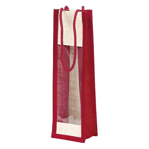 Saco Juta Vermelho c/ alças c/ janela PVC 1 Garrafa 10x9x36cm...