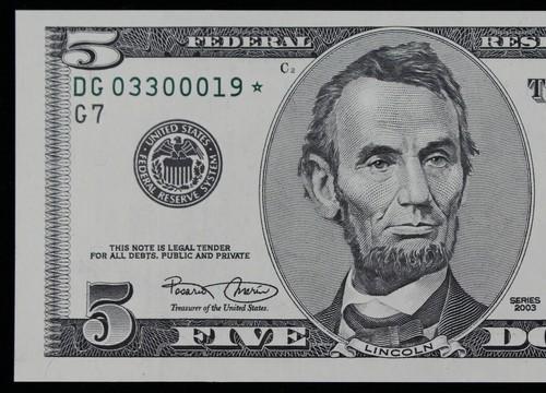 $5 2003 GEM CU Star Federal Reserve Note DG03300019* five...