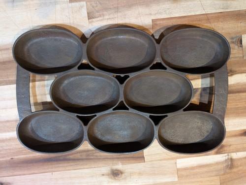 Cast Iron Gem Pan 8-Well Oval #5 Mold Biscuit Cornbread Baking...