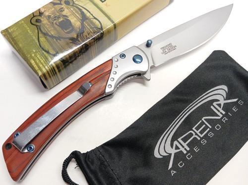 Slim Gents Pocket Knife Blade Spring Assisted Flipper Wood Tip...