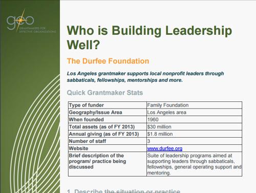 Who is Building Leadership Well? The Durfee Foundation - GEO