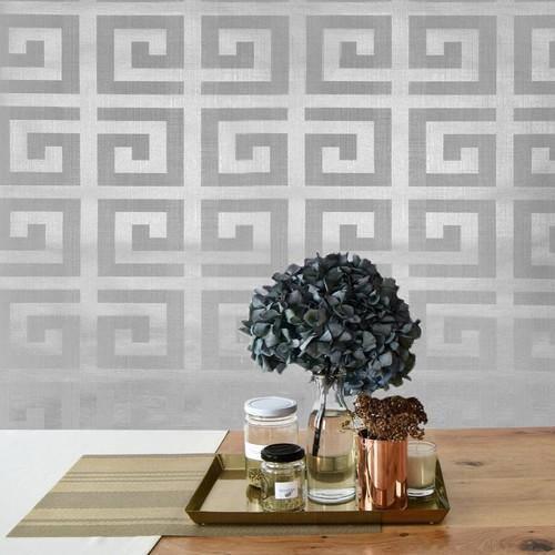 Geometric gray silver metallic matte greek key textured geo...