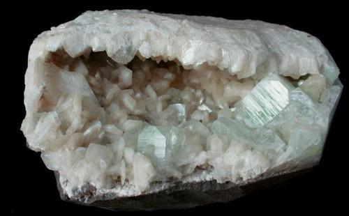 * Large Light Green Apophyllite Stilbite Crystal Geode India
