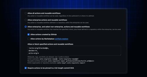 GitHub Actions policy now supports blocking and SHA pinning...