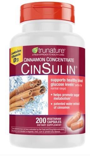 Trunature CinSulin 500mg Cinnamon 200 Caps Vegetarian Gluten...