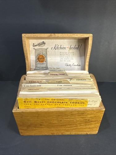 Gold Medal Wood Recipe Box W/ Hand Written & Newspaper Clippings