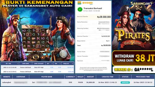 BUKTI KEMENANGAN 16 NOVEMBER 2025 DI GAME PIRATES GOLD RUSH WD...