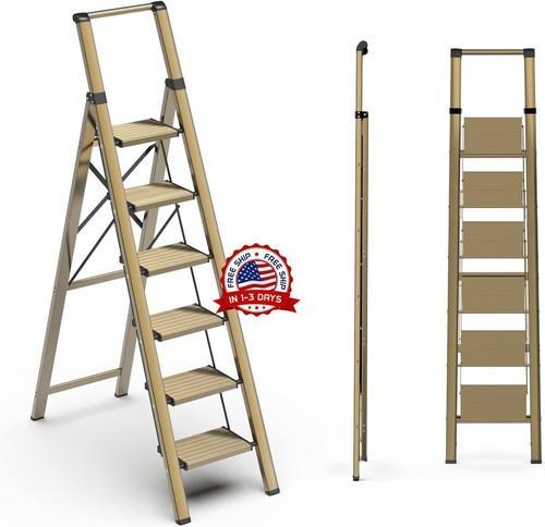 Escalera plegable para el hogar antideslizante con empuñadura...