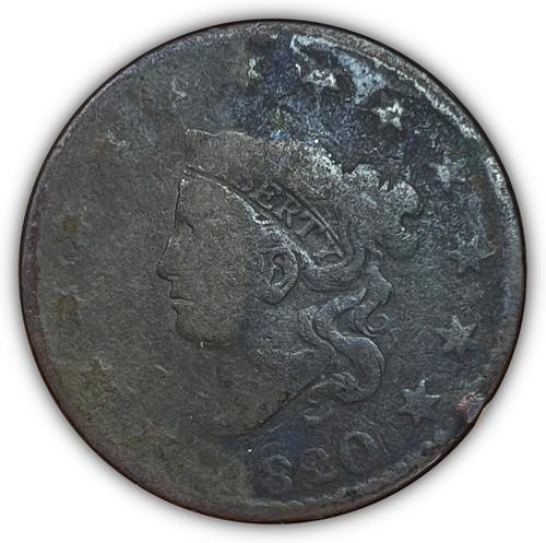 1820 Small Date Coronet Head Large Cent Good G Coin, Details...