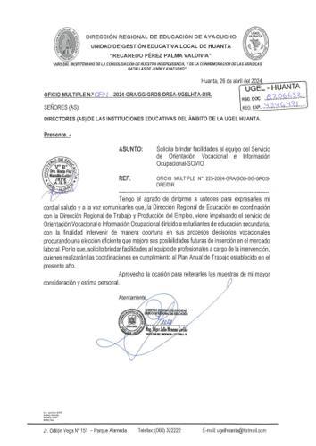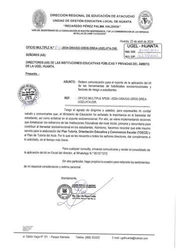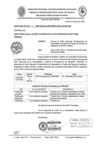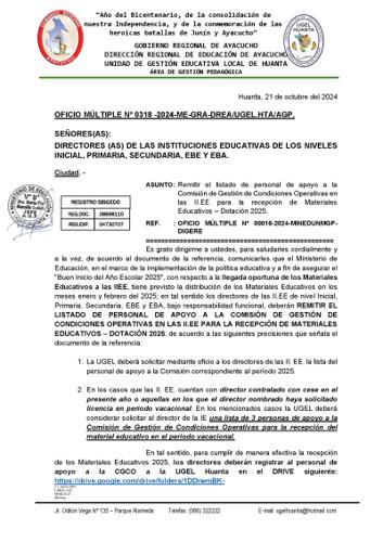 OFICIO MÚLTIPLE Nº 0318 -2024-ME-GRA-DREA/UGEL.HTA/AGP.