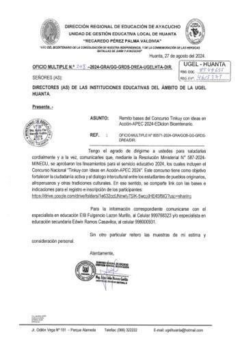 OFICIO MÚLTIPLE Nº 347 – 2024-GRA-DREA-UGEL.HTA/AGI