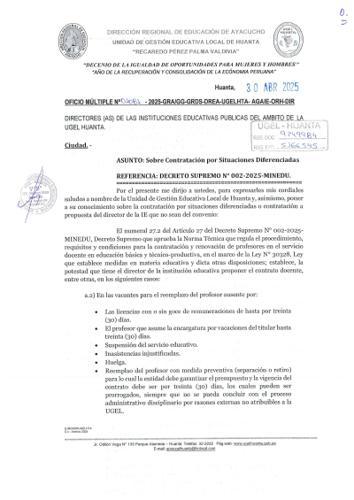 OFICIO MULTIPLE Nº 022-2025-GRA/GDS-DREA/UGEL/AGI-HTA