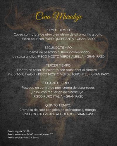 Cena maridaje 5 tiempos con Pisco Gran Paso - Experiencia MESA...