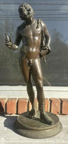 Narcissus: Antique Large Patinated Bronze Sculpture Grand Tour...