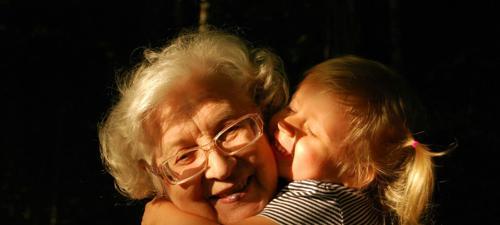 Grandmother spoiling cute young granddaughter