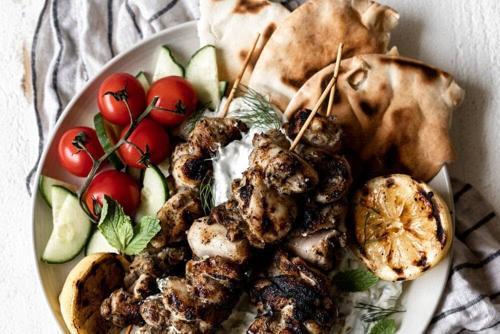 Greek Chicken Souvlaki with Charred Lemon - Cooking with...