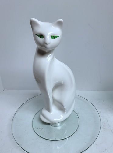 Mid Century Modern Ceramic Siamese Cat Green Eyes Statue...