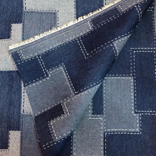 Vintage Washed Denim Fabric Rectangular Grid Splicing Fabric...