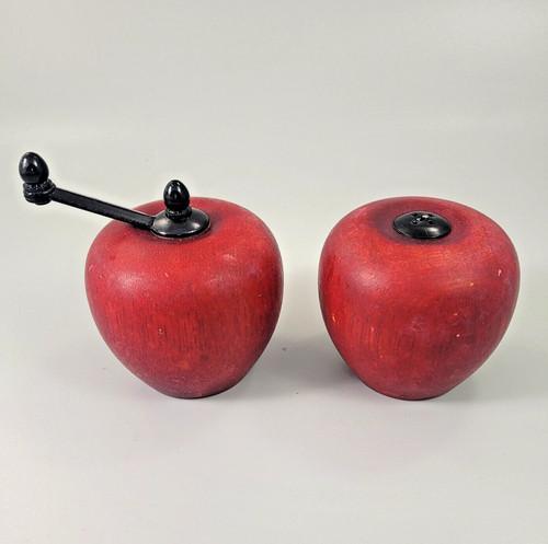 Vintage Retro Wooden Red Apple Salt Shaker and Pepper Grinder