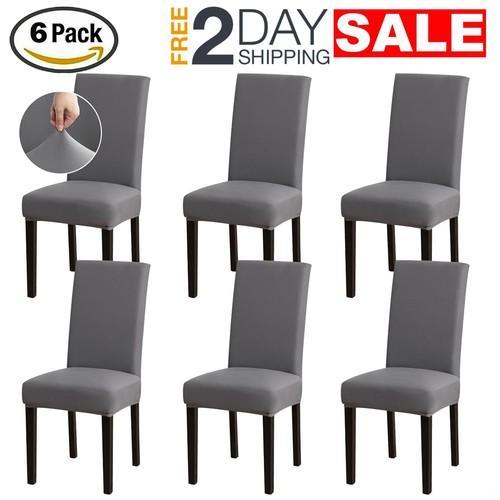 6 Fundas Para Sillas De Comedor Gris Forros Elasticas Set...
