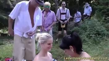 extreme wild lederhosengangbang groupsex orgy with two sexy...
