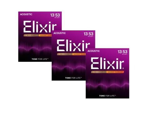 *3 SETS ELIXIR 11182 80/20 BRONZE ACOUSTIC NANOWEB GUITAR...