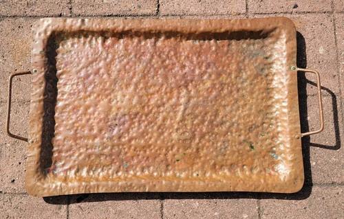 Vintage Rectangle Copper Tray Hammered Handled Large Serving