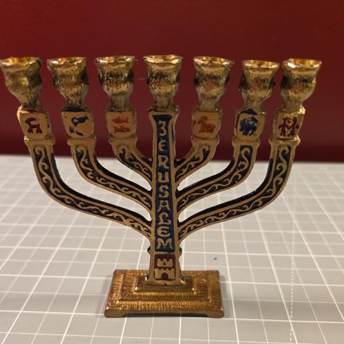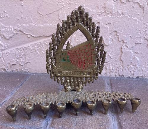 Vintage Brass Israel Menorah Hen-Holon Tablets of Covenant...