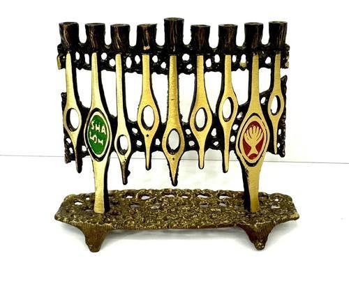 Vintage Brass Hanukkah Menorah Hen Holon Judaica Israel 5" High