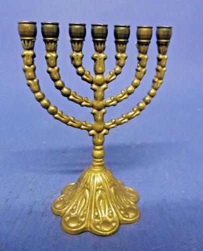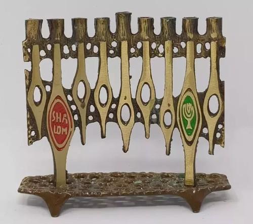 Vintage Shalom Brass Hanukkah Mini Menorah 4" x 4.5" Hen Holon...